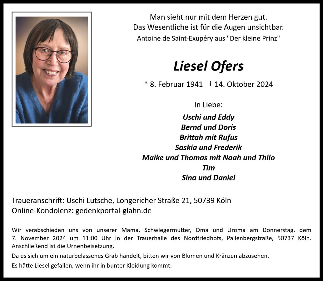 Unser ganz herzliches Beileid zum Tode eurer Mutter. Es kommt dann doch so plötzlich. Euch viel Kraft und Unterstützung in den nächsten schweren Tagen und Wochen