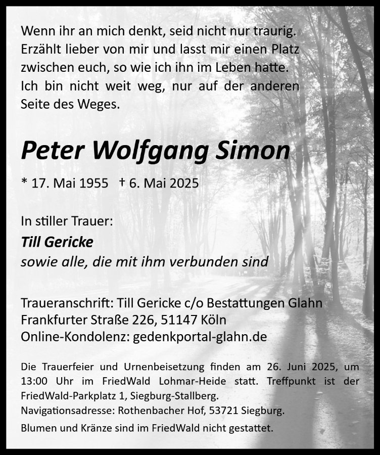 Peter Wolfgang Simongestorben am 6. Mai 2025
